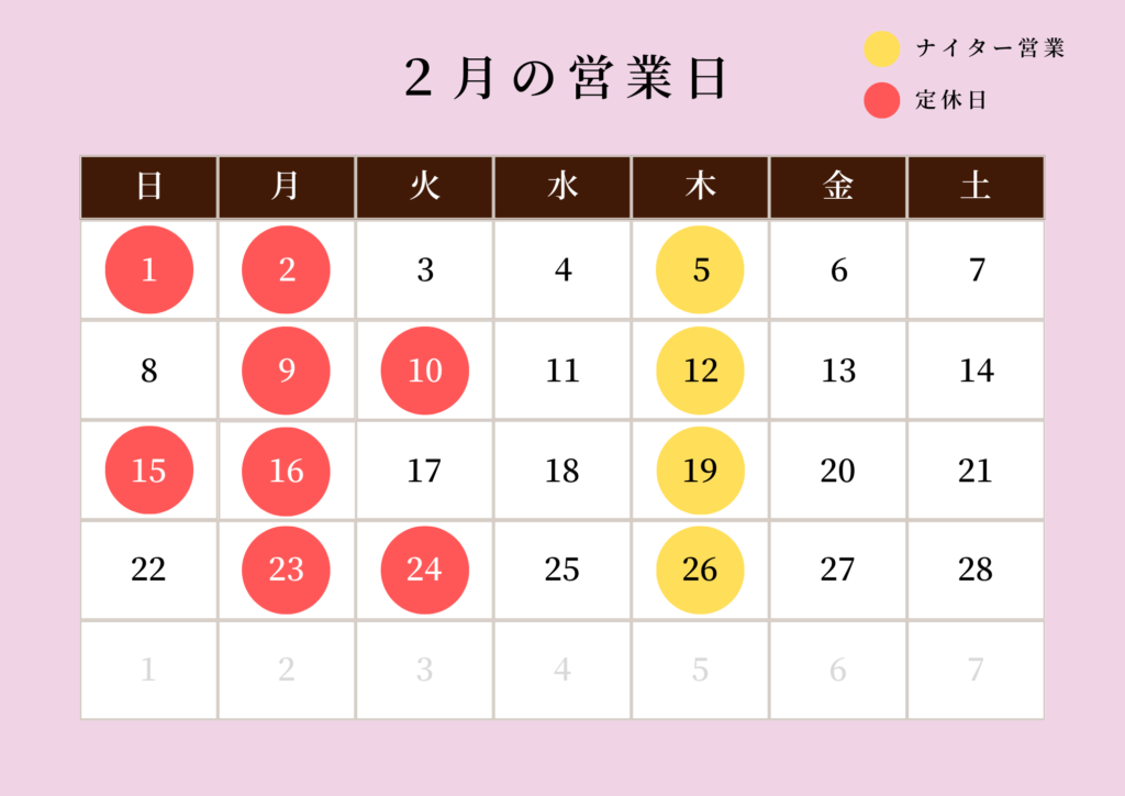 (月により、第1・第3・第5火曜がお休みになる場合があります。)